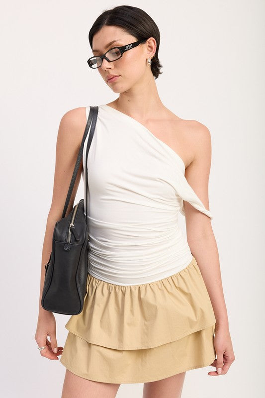 ASYMMETRICAL SHARKBITE HEM MINI SKIRT