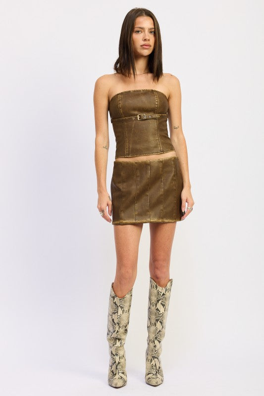 SUEDE HALTER TOP WITH BACK ZIPPER