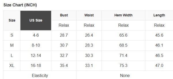 See size chart for approximate measurements
