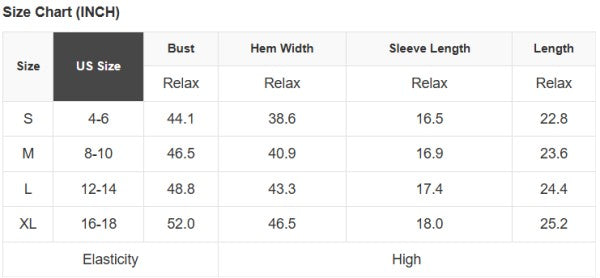 See size chart for approximate measurements