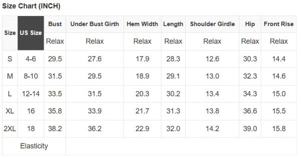 XL: (Bust), (Waist), (Hips), (Length)