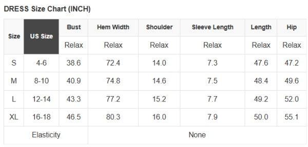 See size chart for approximate measurements