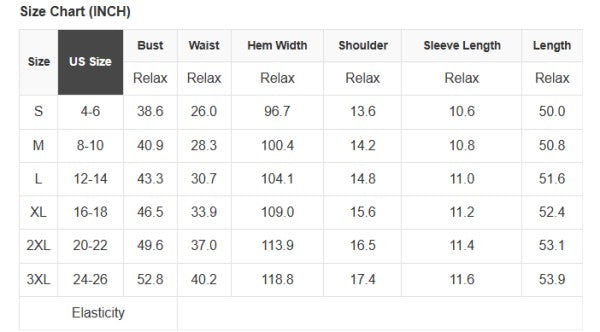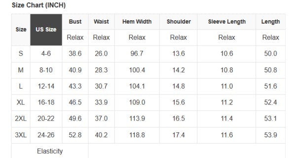 See size chart for approximate measurements.