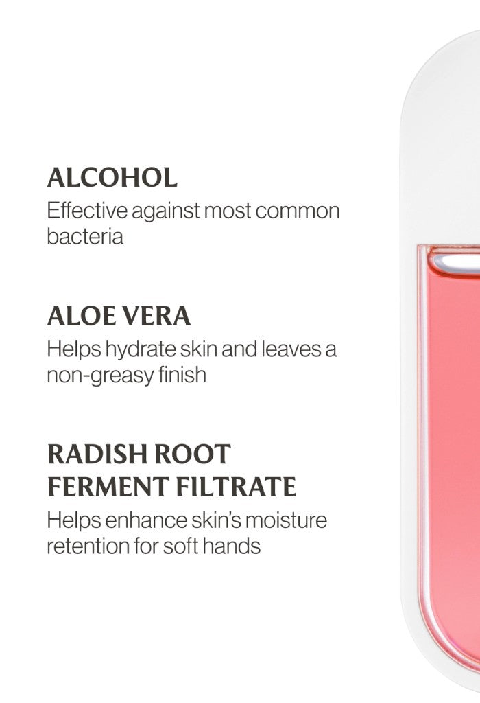 A skincare-forward hand sanitizer that leaves hands sanitized, hydrated, and delicately scented.