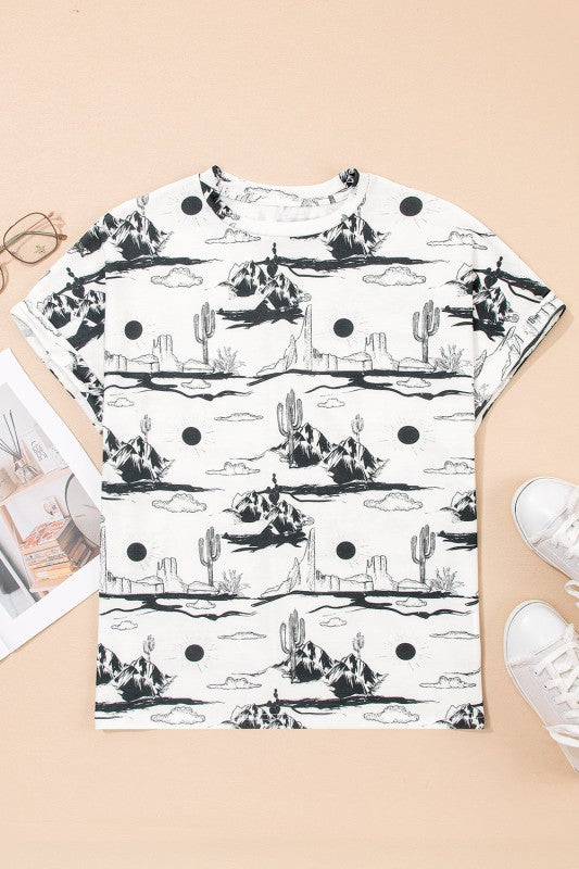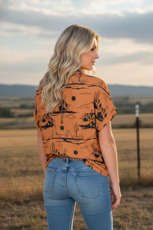 Escape to sun-kissed horizons with our Top. This charming western-inspired piece features a soothing desert sand print that brings effortless style to your everyday wardrobe. The soft knit fabric hugs you in all the right ways, making it ideal for layering over your favorite tee or wearing solo as a go-to staple. Whether you're channeling boho vibes or keeping it casually chic, this adorable top delivers comfort without compromising on flair. Perfect for those who crave a touch of wanderlust in their closet. Polyester/Spandex