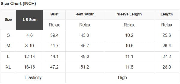 See size chart for approximate measurements