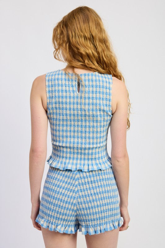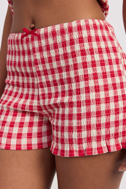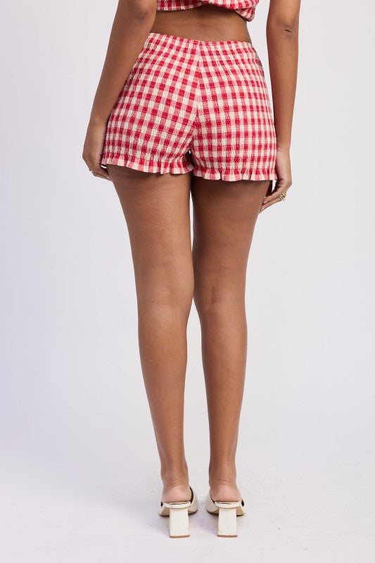 Picnic szn is approaching. Sweet and dreamy smocked gingham print with lettuce trim. Pair with matching top. Just pair with a glass of wine, a blanket and a basket of croissants.