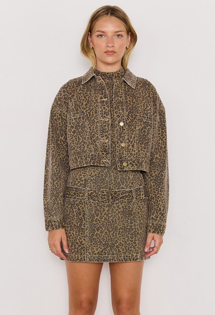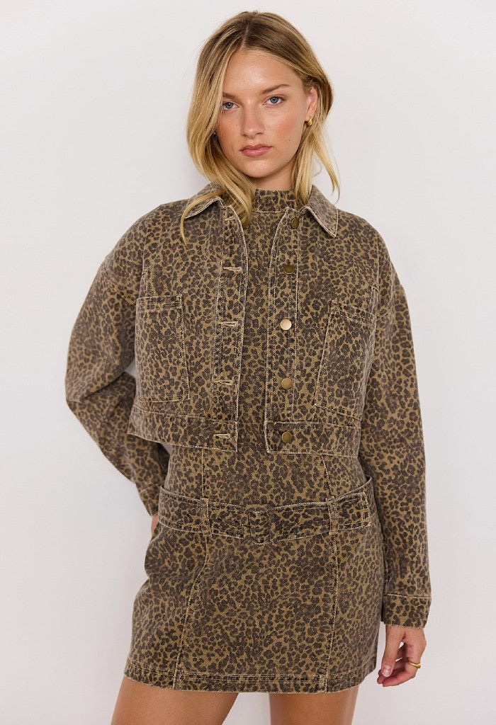 • Say hello to your new statement mini. The Anouk Denim Mini Dress is cut from 100% cotton in an all-over leopard print wash for that perfectly worn-in edge. Featuring a high neckline and matching belt, it's the kind of throw-on-and-turn-heads piece that works with boots or barely-there heels.