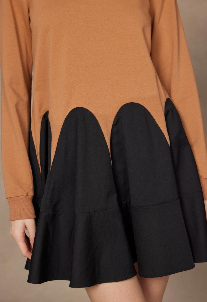 The perfect work to wine outfit does exist. This sweet mini dress features a cool contrast skirt with a trendy mixed media fabrication. Effortlessly chic, dress it up with a cute headband and ballet flats or keep it casual with tennis shoes for the office or happy hour with the girls!