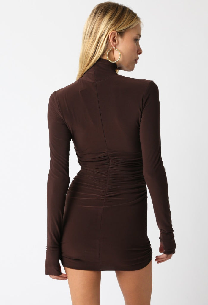 Major curves ahead! All eyes will be on you in the Milly Dress. This bodycon mini features long sleeves with a trendy mock neck. Slip it on with heels or tall boots and cute hoops for a girls night out.