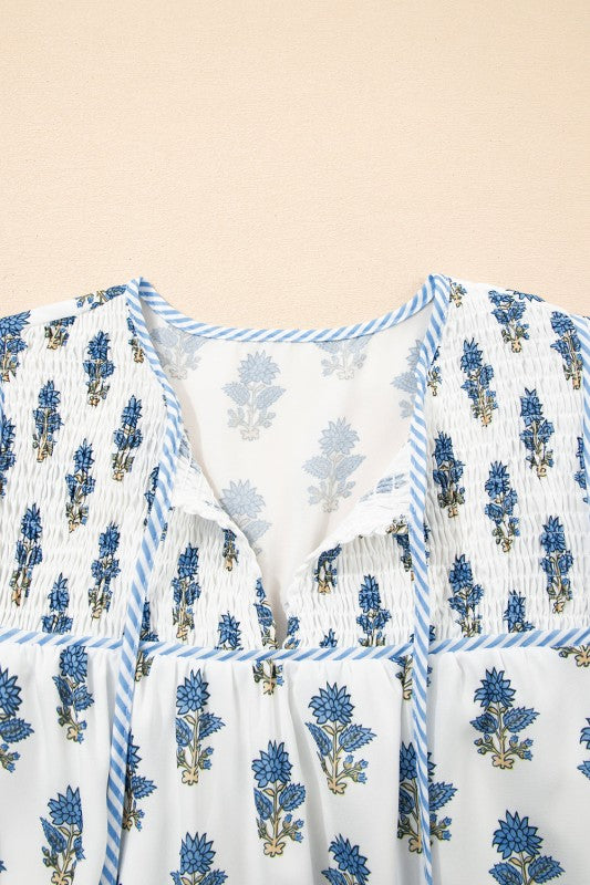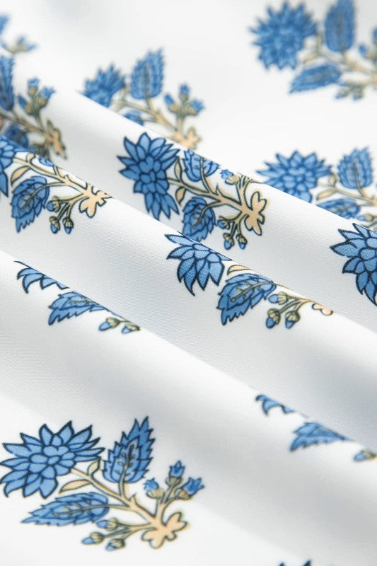 Step into whimsy with this enchanting mini dress! Adorable puff sleeves frame your shoulders while intricate florals bring garden-fresh charm to every wear. Layered ruffles create a playful silhouette that's perfect for romantic outings or lazy summer days. Striped trim details pop along the neckline and skirt hem, adding a fun twist. And yes, pockets included, because looking fabulous shouldn't mean sacrificing practicality!