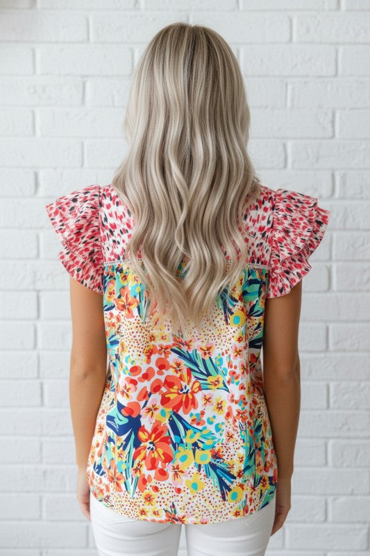 Bloom into style with this blouse that brings vibrant personality to your wardrobe. The charming ruffled cap sleeves add a playful, feminine flair that elevates any outfit. Crafted from breathable fabric, it's designed for all-day comfort whether you're heading to brunch or the office. Pair it effortlessly with jeans, skirts, or trousers for endless styling possibilities. A versatile essential that makes getting dressed fun.