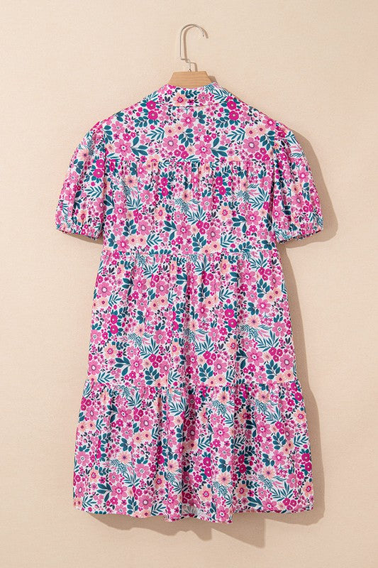 Bloom into effortless style with the Meadow Muse Floral Mini Dress that flatters every figure. The crisp neckline brings polished sophistication, while the half placket and playful puff sleeves add just the right amount of personality. Cut in a relaxed, loose silhouette that moves beautifully with you, this versatile piece transitions seamlessly from casual days to dressed-up moments. Whether you're heading to brunch, weekend plans, or vacations just add sneakers, sandals or boots and your instantly styled!