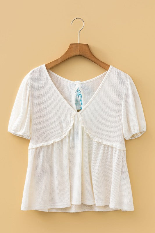 Elevate your everyday style with this charming top! The flattering V-neckline and playful bubble sleeves create an effortlessly feminine silhouette, while the peplum detail adds a touch of elegance that works beautifully with virtually any outfit. Crafted from lightweight, stretchy fabric, this versatile piece keeps you comfortable all day long, whether you're dressing up for brunch or keeping it casual. A wardrobe essential that feels as good as it looks.