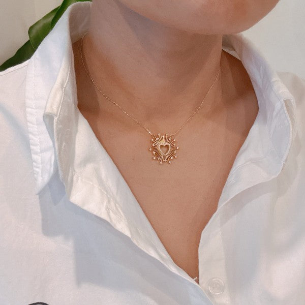The Halo Heart Necklace features a unique and lovely heart design, making it the perfect accessory to showcase your personal style. With its detailed workmanship, this necklace is sure to add a touch of glam to any outfit!