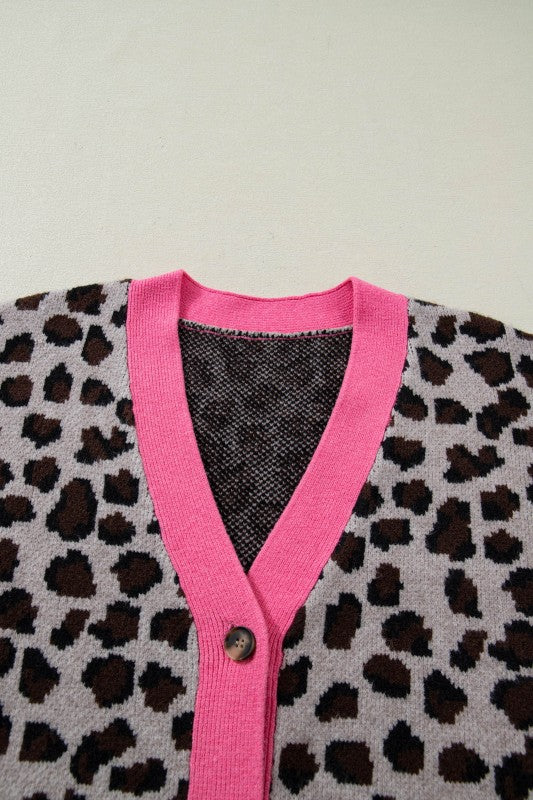Embrace your wild side with this oversize cardigan that's equal parts cozy and fashion-forward. The bold leopard print makes a statement, while color block trim adds a cheeky pop of modern contrast. Button down the front for effortless styling, throw it over anything for instant laid-back cool. Perfect for layering when you want to feel wrapped in comfort without sacrificing that on-trend vibe.