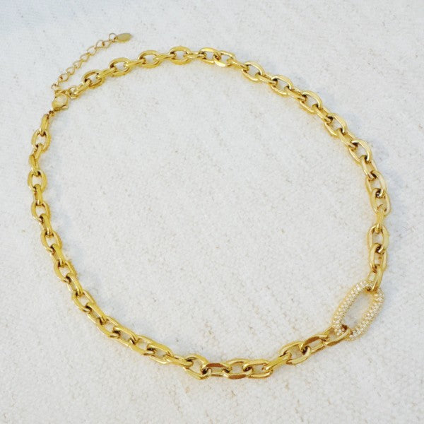 Indulge in modern luxury with the Pave Lock Chain Necklace. This striking piece features an edgy lock and chain design that exudes sophistication and uniqueness. Perfect for dressing up or down, this versatile accessory adds a touch of glamour to any outfit.