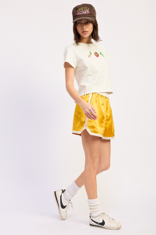 Go for the gold in our Golden Era Shorts. These stylish shorts features a satin finish that instantly elevates your outfit. Throw them on with a cute crop top or a comfy hoodie and tennis shoes while lounging at home or running errands.