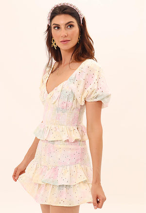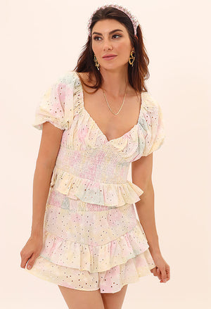 • Magic's in the air! This sweet top features a smocked design with eyelet detail and a flirty sweetheart neckline. Pair with the Pixie Ruffle Shorts for a cute matching set.